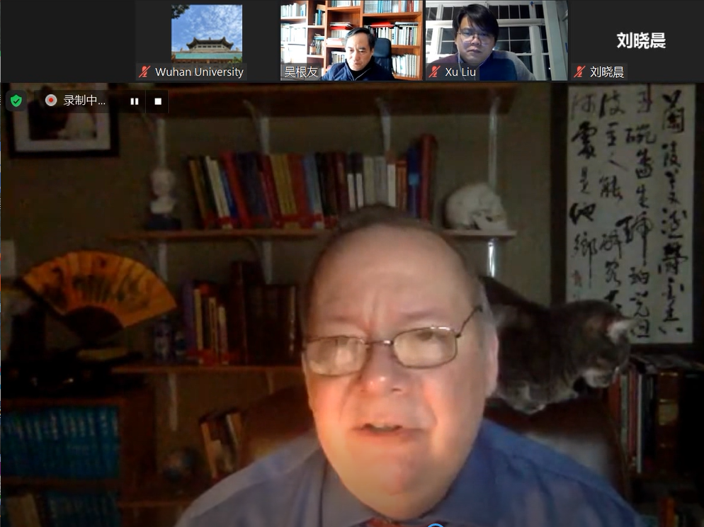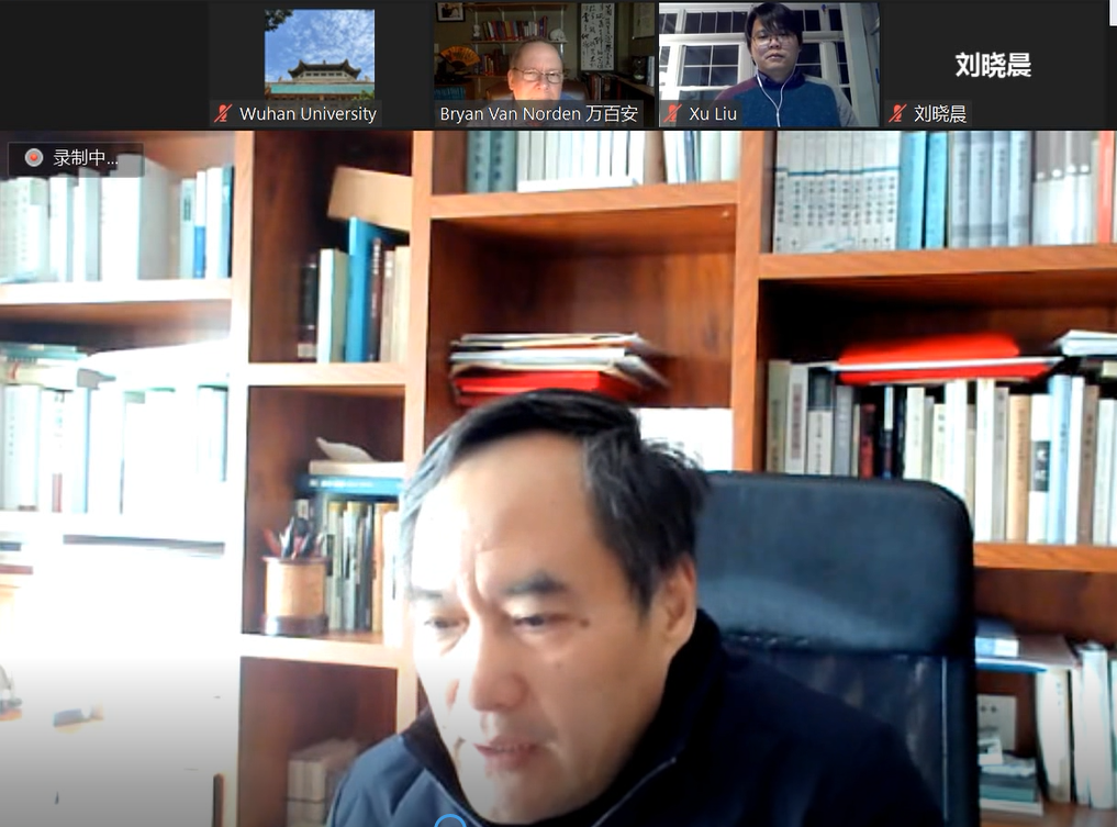 本网讯(通讯员丁铭)2021年12月2日,大学文明对话高等研究院主办的“他者眼中的中国形象期待”系列访谈式讲座第二期顺利进行,本期与谈嘉宾为美国瓦萨学院教授、著名汉学家万百安(Bryan Van Norden)先生。此次对谈通过线上平台进行,新葡的京集团35222vip教授、新葡的京集团35222vip文明对话高等研究院院长吴根友主持访谈,耶鲁大学访问学人刘旭博士翻译。新葡的京集团35222vip以及校内外、海内外的老师和学生通过线上直播平台参加了本次讲座。