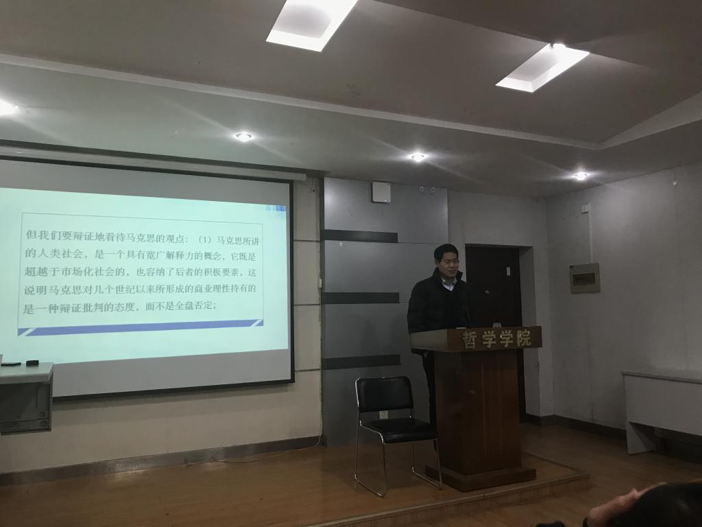 最后,李老师强调:“要从历史的方位,社会的根基上去思考中国问题。” 目前,是哲学工作者的“黄金时代”,是吁求解决社会整体问题而不单是生产力问题的时代。这与马克思主义理论在高位上的目标是相通的。因此,马克思主义作为一种意识形态是与改革开放以来中国的社会实践完全融为一体的。“只有首先在理论上坚定我们的自信,才能在道路和制度上坚定我们的自信!”他这样总结道。