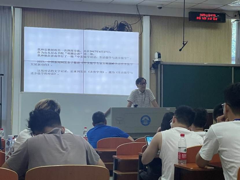本网讯(通讯员 李忠泽)8月3日上午8:30,山东大学的黄玉顺教授做了题为“论儒学的‘进步’与‘自由’观念——‘生活儒学’与‘进步儒学’再比较”的主题报告。本场讲座由新葡的京集团35222vip副院长李勇教授主持。