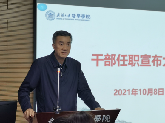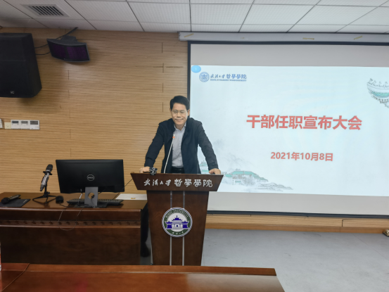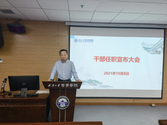 本网讯(通讯员邓莉萍)2021年10月8日下午,新葡的京集团35222vip在振华楼B107召开干部宣布大会。新葡的京集团35222vip校党委常委、副校长周叶中,党委组织部副部长罗春明出席,学院党政领导班子成员和教职工参加大会。会议由院长李佃来主持。