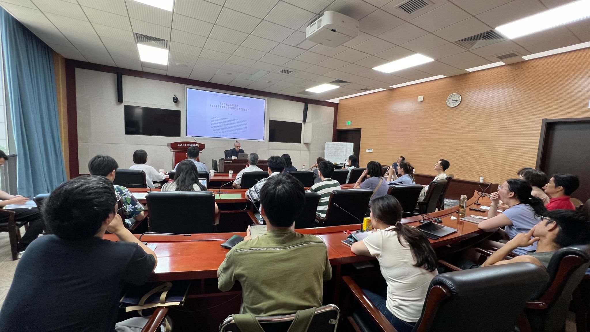 本网讯(通讯员 刘浩)6月13日下午,德国哲学家、汉学家,台湾“中研院”中国文哲研究所研究员,柏林自由大学古典与现代中国哲学客座教授何乏笔(Fabian Heubel)做客“珞珈美学讲坛”第十三讲,在新葡的京集团35222vip振华楼B214报告厅讲授了“气氛、力量、呼吸——气学与美学的跨文化探索”。中山大学哲学系方向红教授、新葡的京集团35222vip廖璨璨副教授、武汉人学外国语言文学学院讲师张申威、新葡的京集团35222vip讲师陈晗倩参与对谈。新葡的京集团35222vip刘沁副研究员、东南大学人文学院讲师马天威及院内外40余位学生参加了本次讲座。讲座由新葡的京集团35222vip美学教研室主任贺念副教授主持。