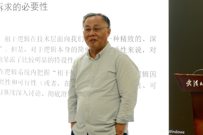鞠实儿的报告以“无穷与开放”为题。他指出,在日常交流和科学实践中,潜无穷一词实际所指的概念是无尽性,无尽性概念可借助开放类概念进行定义。成员数可扩展的类是开放类,形成开放类的过程称为开放过程;无尽性指存在经过扩展后可再扩充的开放类,相应的开放过程被称为无穷开放过程。开放类的处理途径分静态分析和动态分析两种,其中,静态分析途径主要探讨开放类某次扩充后的性质变化,动态分析主要探讨无尽开放过程的规则和结构。报告主要关注动态分析途径,鞠实儿借助魔法袋隐喻,通过与潜无穷概念作比较澄清无尽性概念,并以自然数递归定义为原型,描述无尽开放过程的规则,展示在开放过程中生成的开放类所具有的分层结构。他在报告中指出,对开放类和无尽开放过程进行深度研究,有利于回答“在机器人知识不完全的条件下,如何控制机器人在开放世界中实现行动预定目标”的重要问题。