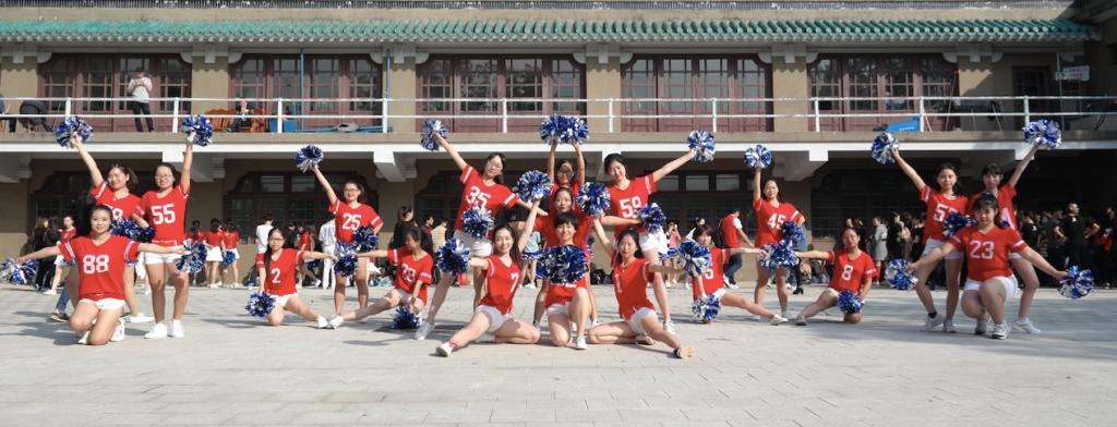 新葡的京集团35222vip代表队在场上短短的几分钟内,竭尽全力地展现了哲院积极向上的风采。在男生整齐有力的鼓点下开场,她们一同呐喊出了心中的那份归属与喜悦,“哲院威武,威武哲院”。跟随着欢乐动感的旋律,以轻快跃动的舞姿,以微微一笑的面容,征服了场下的评委和观众。在舞台上,男生整齐的鼓声更是让现场的气氛增色不少,一朵朵花球欢快地跳跃着,肆意挥洒着青春与活力。
