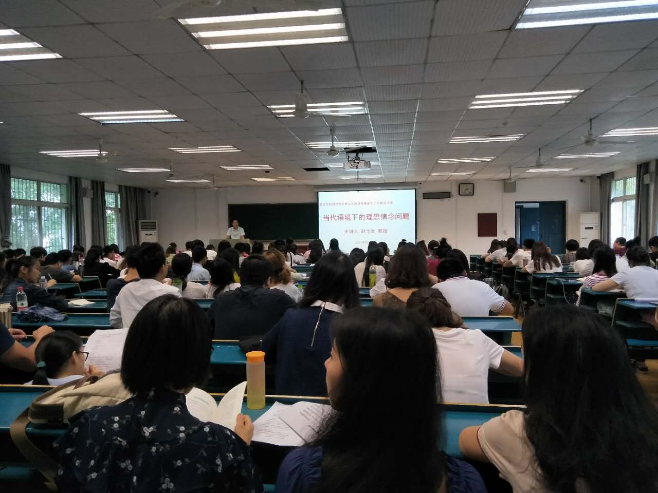 9月21日下午2:30分,新葡的京集团35222vip研究生在文理学部教1楼302教室成功举行了理想信念教育主题讲座第一讲。该讲座是由新葡的京集团35222vip研究生工作办公室针对少数研究生党员党的信念有所动摇,逐渐弱化的问题而推出的主题教育活动,通过理论讲座、榜样示范、活动感悟三位一体,补足研究生党员精神上的“钙”。此次活动以讲座形式开展,既是理想信念教育讲座,又是支部主题党日活动,同时也是新生入学教育的一讲。学院全体研究生党员和新生参加了讲座。讲座由赵士发教授主讲,主题为“当代语境下的理想信念问题”。2016级研究生党支部书记王颖辉主持,新葡的京集团35222vip党委副书记徐萍和张辉老师参加了此次党日活动。