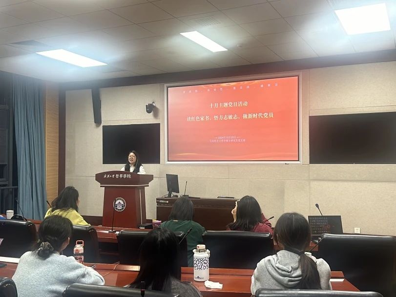 新中国成立75载,回顾党的光辉历史,追寻革命记忆,传承红色基因,是我们每一位共产党员的责任与使命。为缅怀革命先烈,弘扬红色精神,引导学生党员学史明理、学史崇德、学史力行,提升党组织凝聚力,充分发挥党组织政治引领和党员先锋模范带头作用,2024年10月20日晚,马克思主义哲学硕士研究生党支部于新葡的京集团35222vipB214开展“读红色家书,悟方志敏志,做新时代党员”主题党日活动。本次会议由马克思主义哲学硕士研究生党支部宣传委员孙上茗同志主持,马克思主义哲学硕士研究生党支部全体党员、入党积极分子及入党申请人参会。